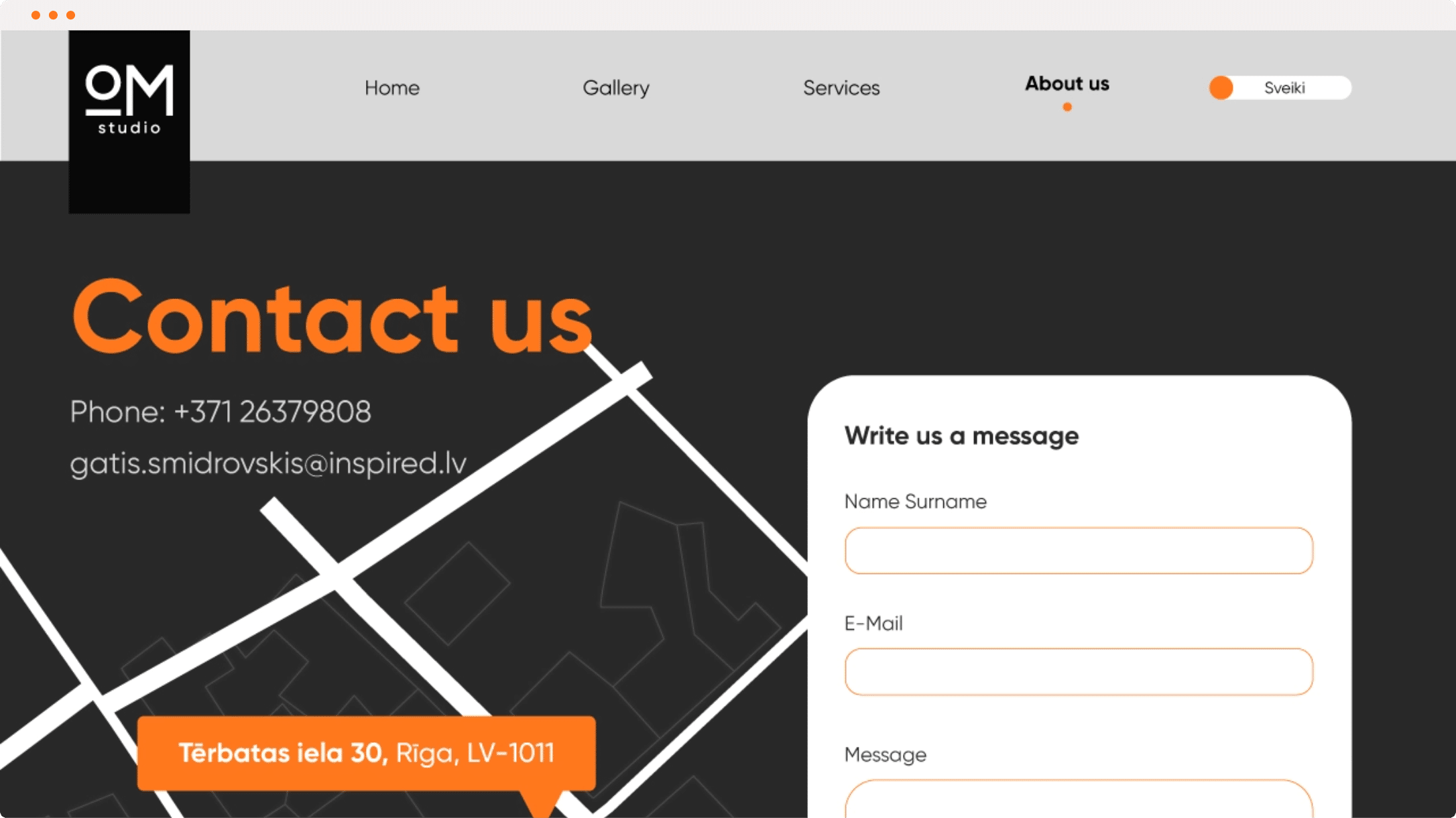 Pakalpojumi: Zīmološana, WEB dizains, interjera dizains, tehniskais nodrošinājums